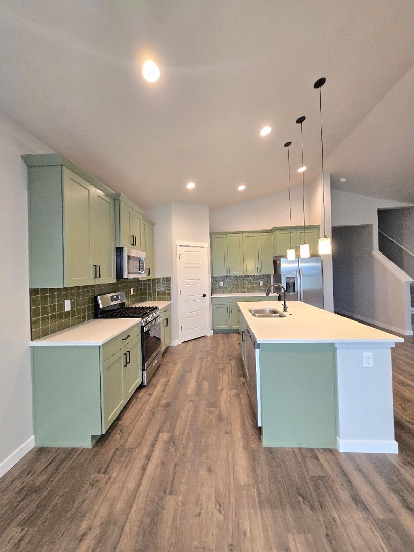 This home features extensive upgrades throughout, including a stunning fireplace in the living room, luxury plank flooring, and beautiful quartz countertops. The kitchen is outfitted with all new stainless-steel appliances, highlighted by a premium gas range.